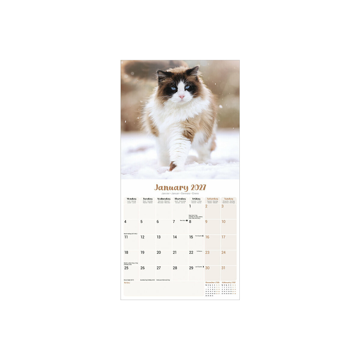 Calendrier 2027 Chat de Race Ragdoll