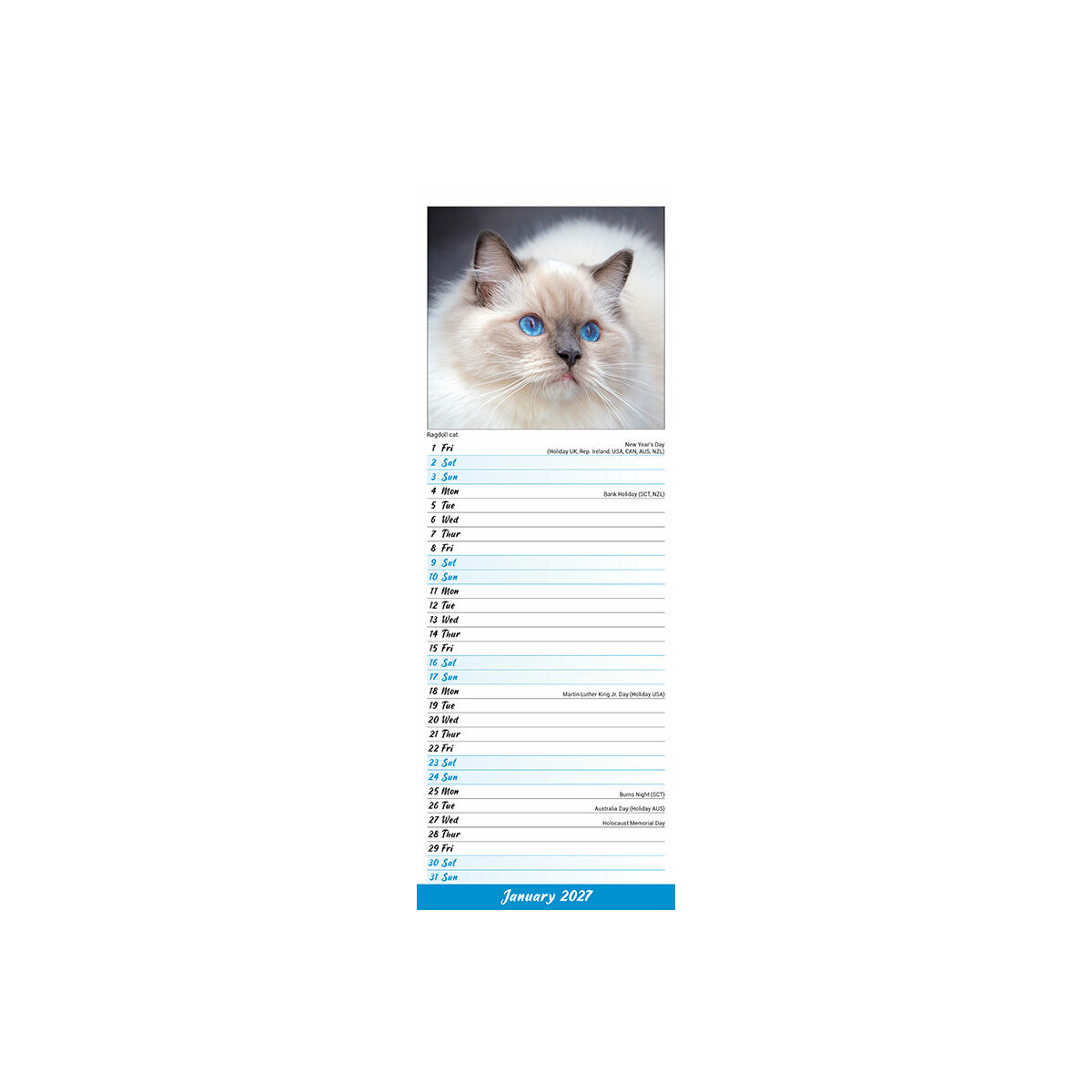 Les points forts de ce Calendrier Etroit Slim 2027 Chat Félin :