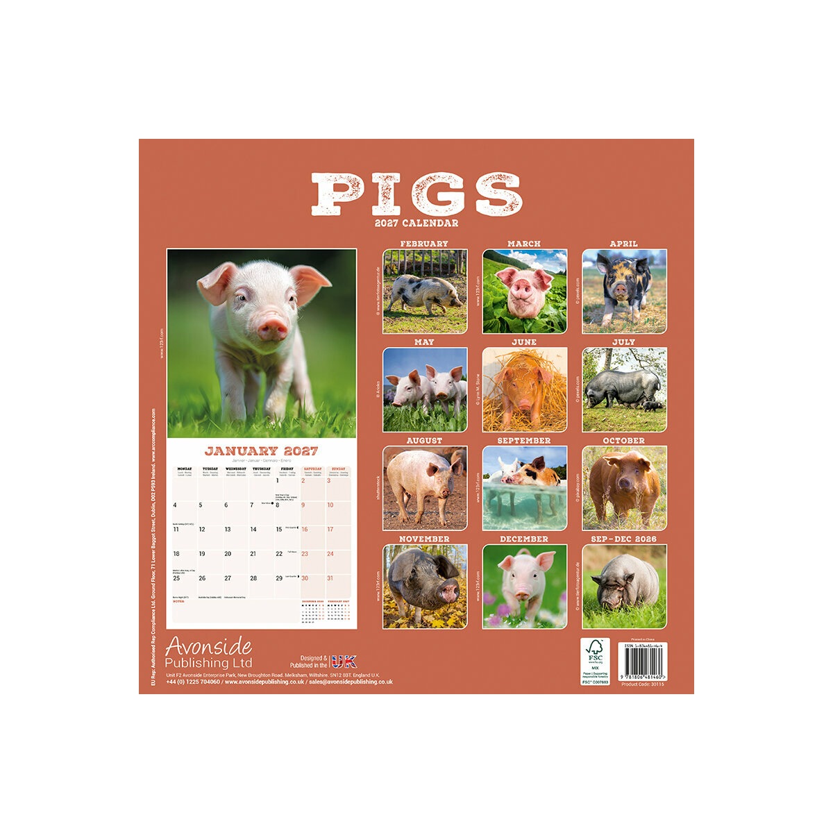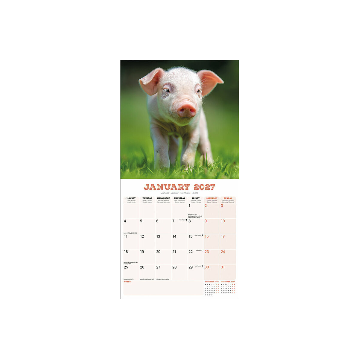 Description : Calendrier 2027 Cochon