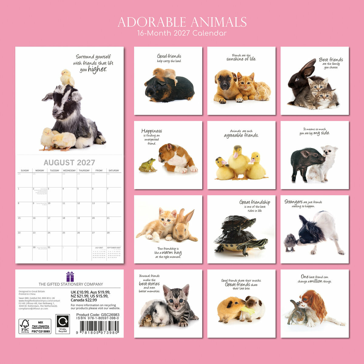 Les points forts de ce Calendrier 2027 Animaux Adorables Fonds Blancs :
