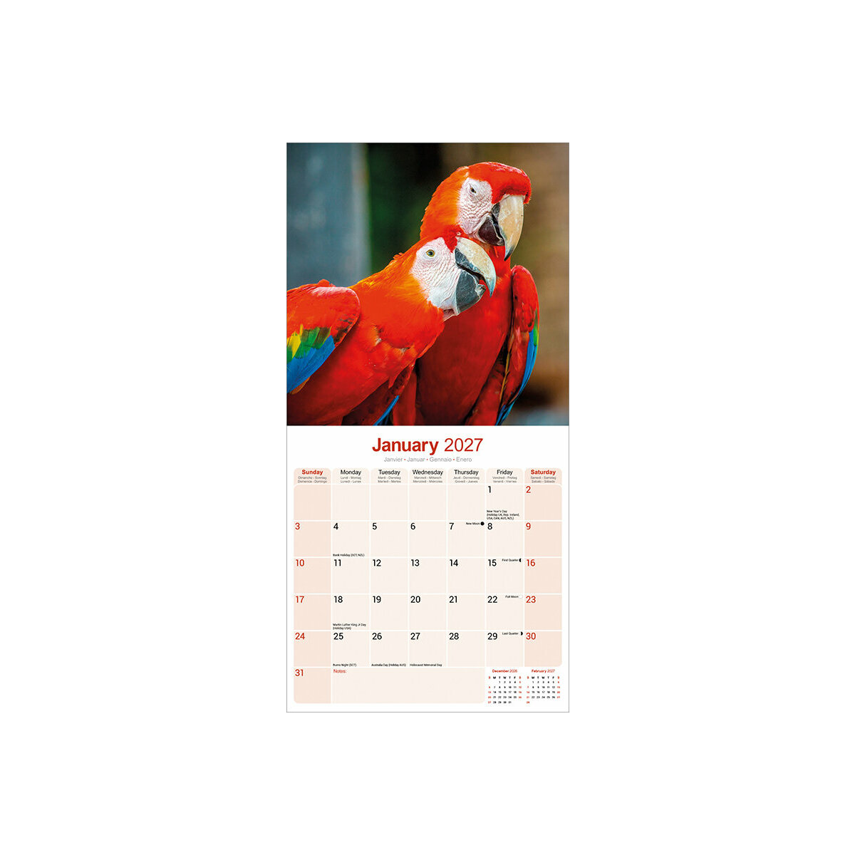 Description : Calendrier 2027 Perroquet Ara Macaw