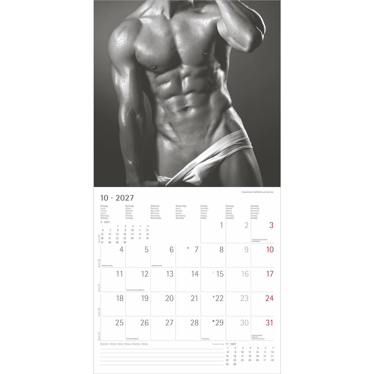 Calendrier 2027 Corps Homme Sexy noir et blanc