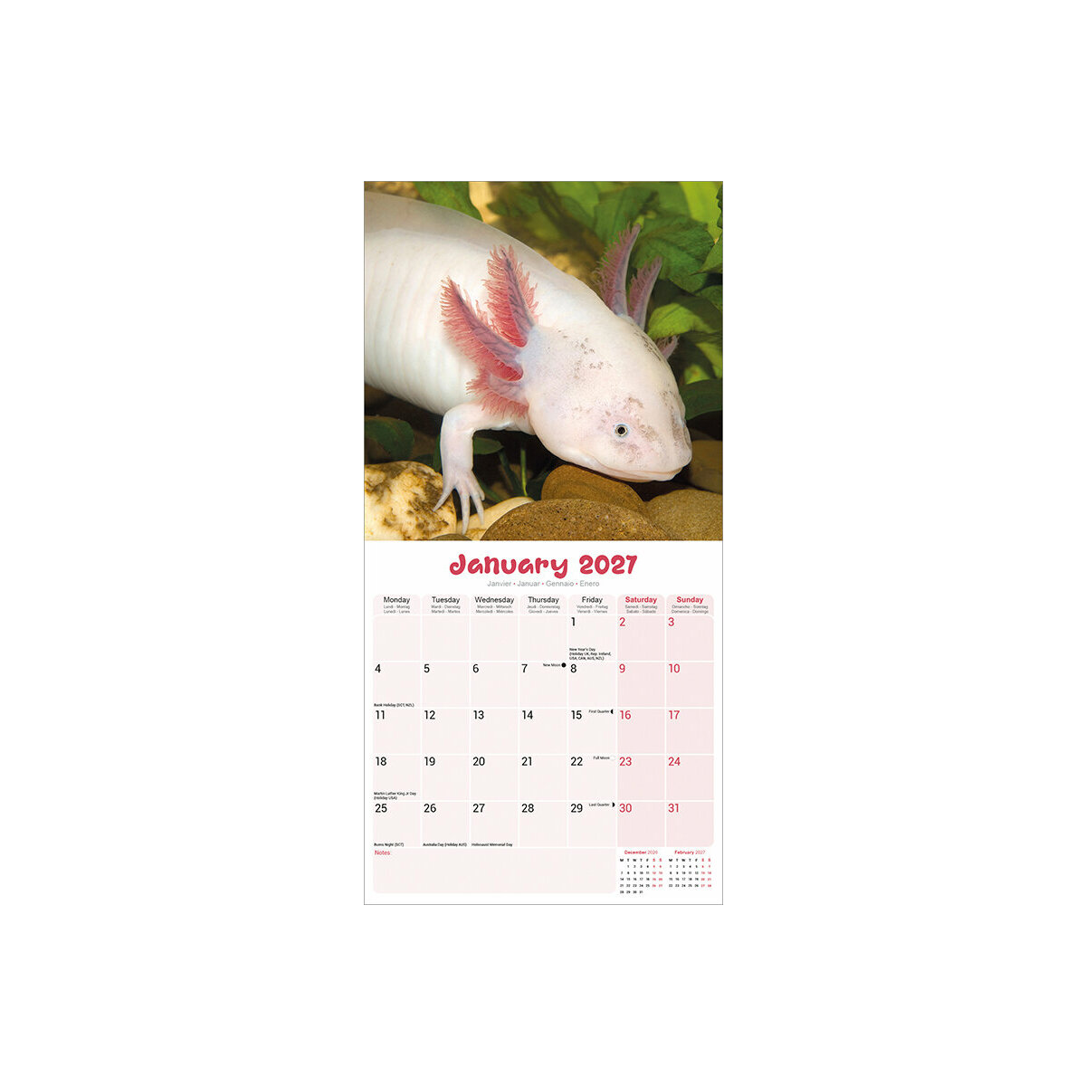 Les points forts de ce Calendrier 2027 Axolotl: