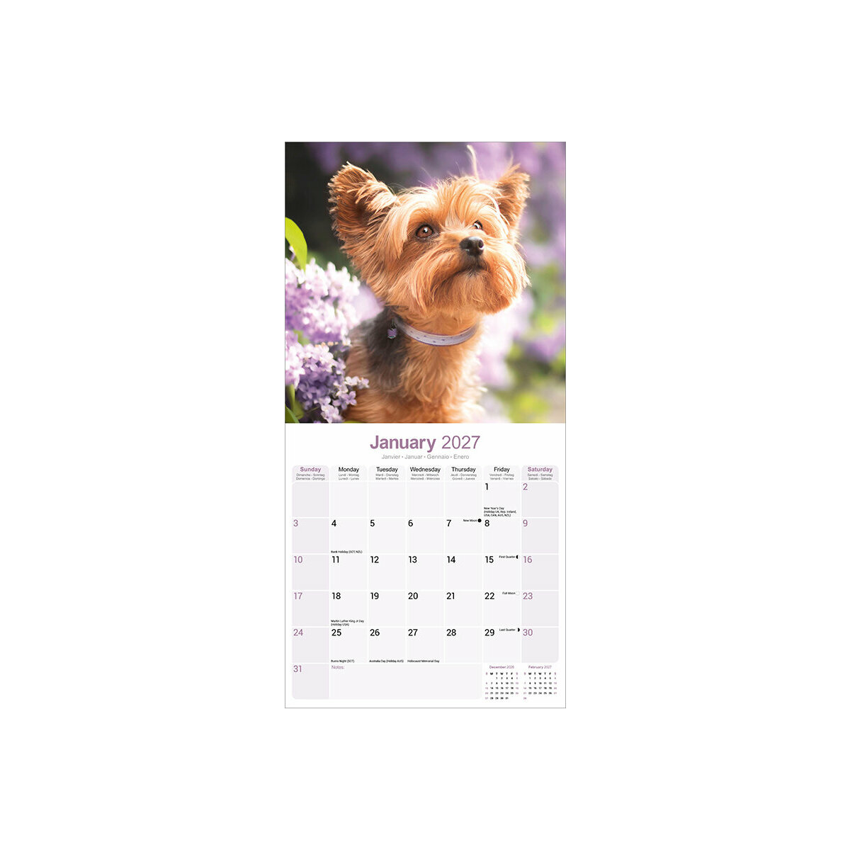 Les points forts de ce Calendrier 2027 Yorkshire Terrier :