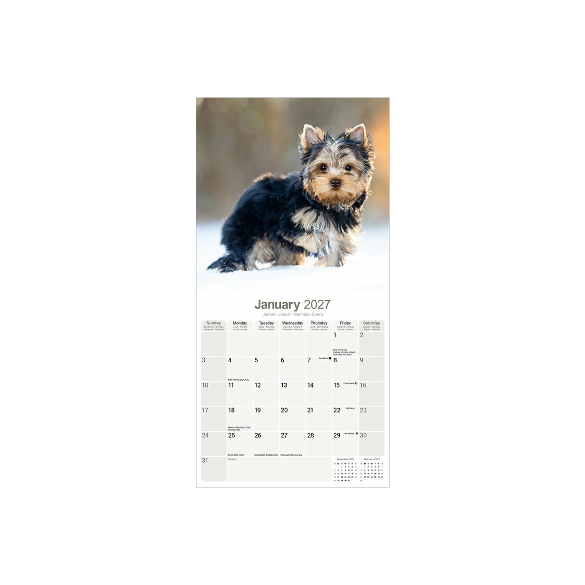 Les points forts de ce Calendrier 2027 Chiots Yorkshire Terrier: