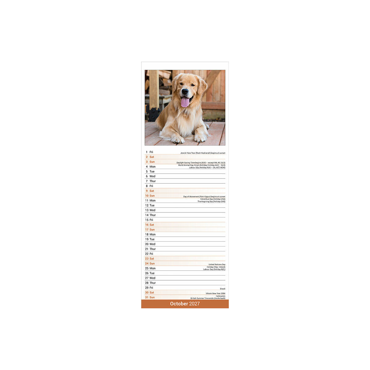 Plus de détail : Calendrier Etroit Slim 2027 Golden Retriever