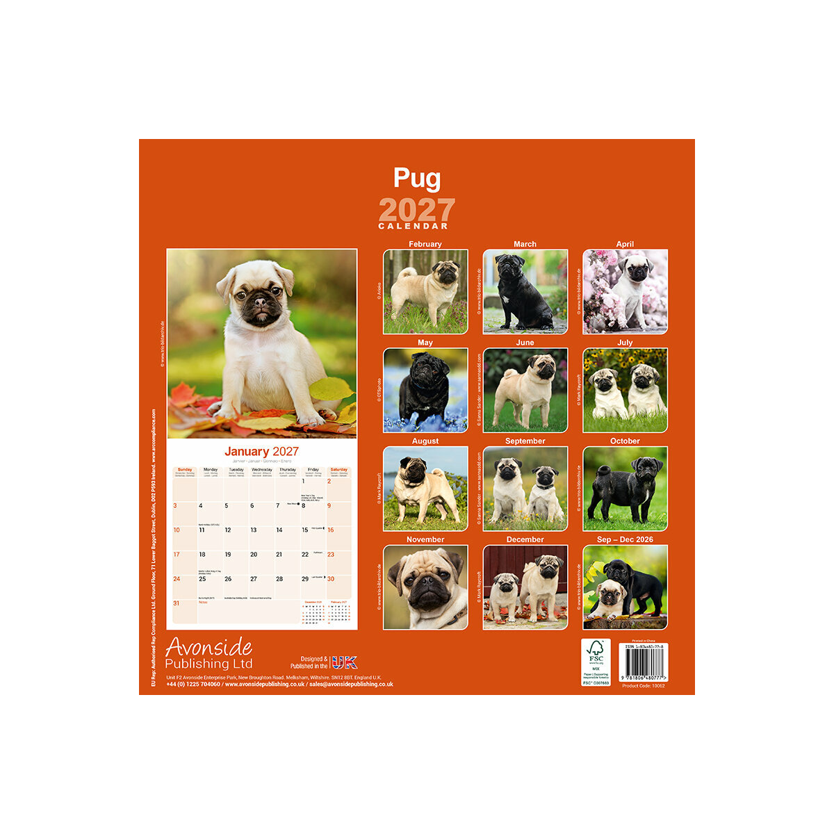 Ce Calendrier Mural 2027 présente chaque mois une superbe photographie mettant en vedette un Carlin, une race de chien au visage expressif et jovial. Chaque image captivante capture la personnalité unique de cette race. Idéal pour les amoureux des Carlin, offrant une touche de charme et de joie tout au long de l'année.