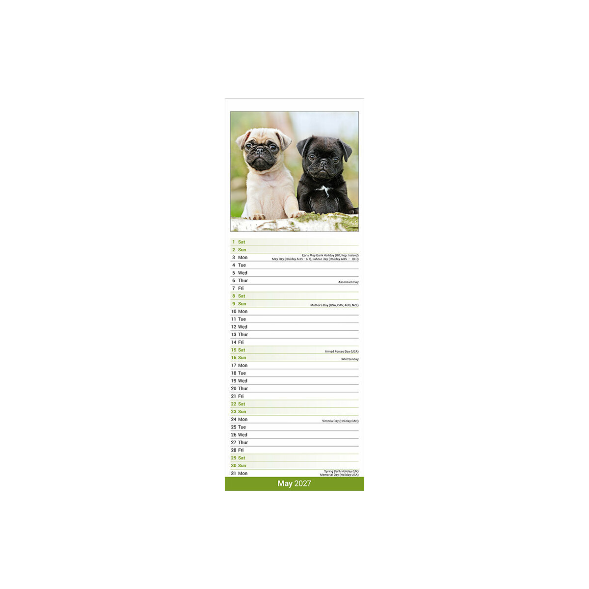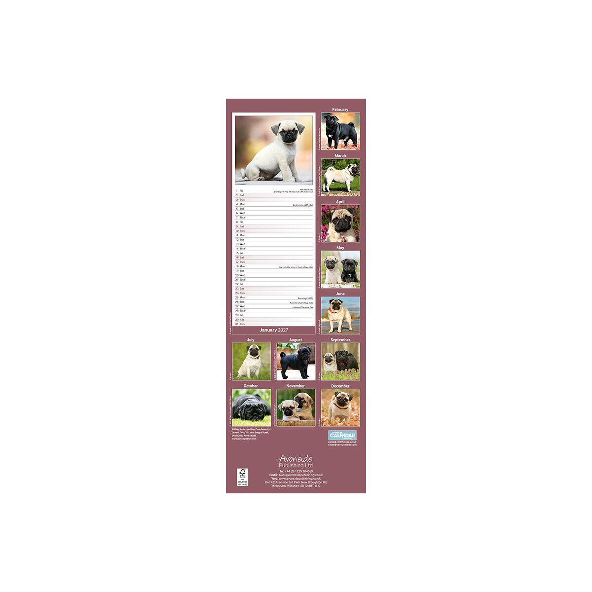 Plus de détail : Calendrier Etroit Slim 2027 Carlin Pug
