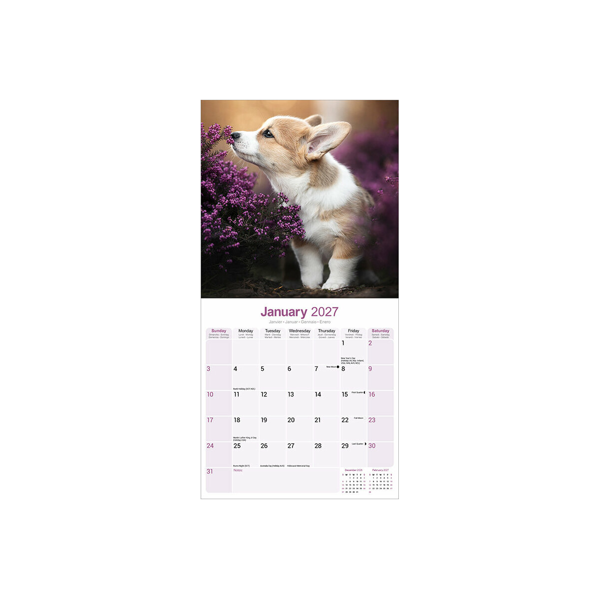 Description : Calendrier 2027 Welsh Corgi