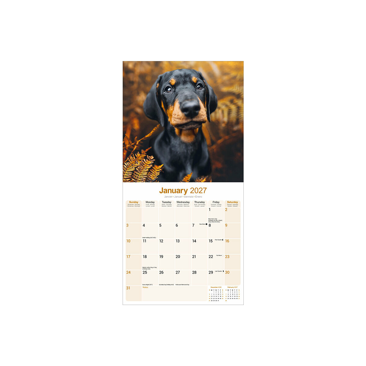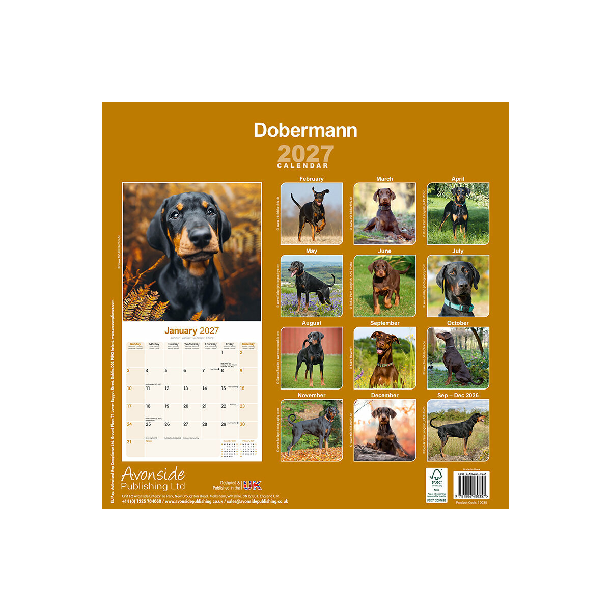 Découvrez le Calendrier Dobermann 2027 , chien de race élégant et robuste, se distingue par sa loyauté et son intelligence. Avec son allure athlétique et sa nature protectrice, il est un excellent compagnon de famille et un fidèle gardien. Son éducation requiert de la patience et de la cohérence.