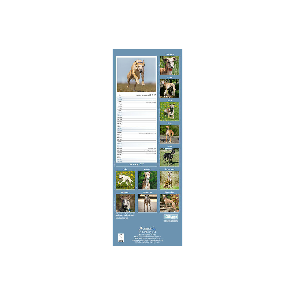 Description : Calendrier Etroit Slim 2027 Greyhound