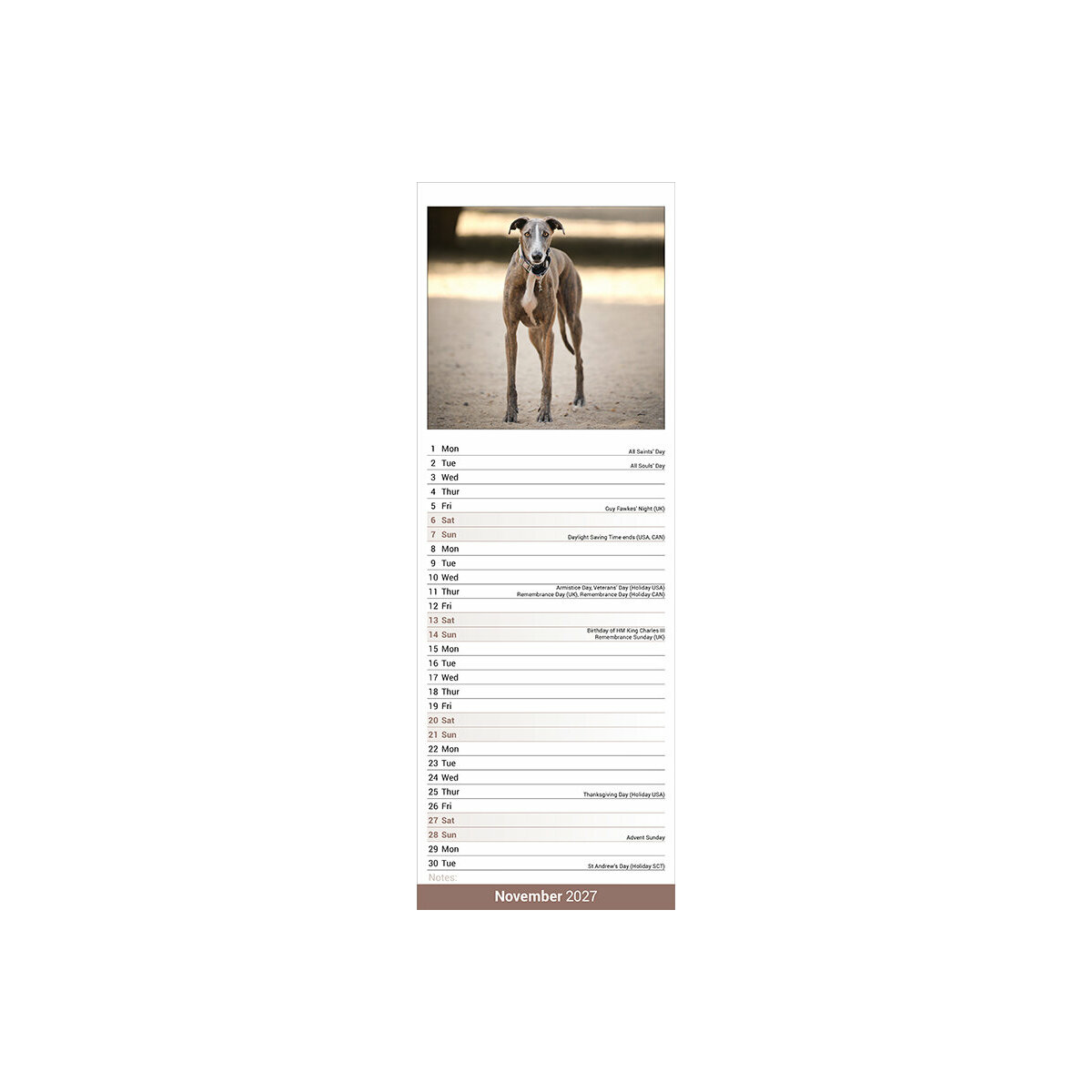 Les points forts de ce Calendrier Etroit Slim 2027 Greyhound :