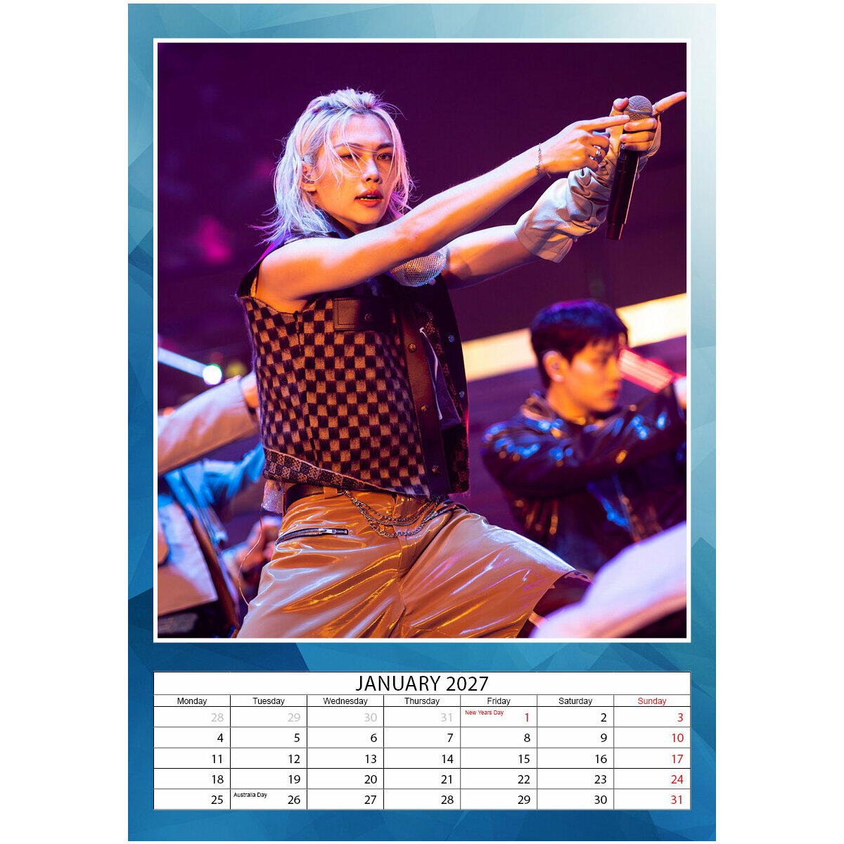 Découvrez le Calendrier 2027 Stray Kids , groupe de K-pop sud-coréen dynamique, connu pour son style puissant et ses chansons auto-produites. Formé en 2017, il mélange rap percutant, mélodies entraînantes et performances intenses. Avec une identité musicale unique et une fanbase mondiale fidèle, Stray Kids redéfinit les standards de la scène K-pop actuelle.