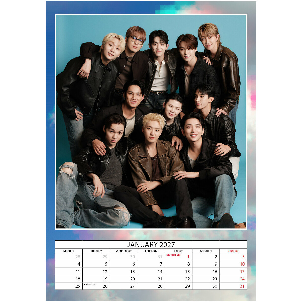 Calendrier 2027 Seventeen Kpop Coréen Format A3