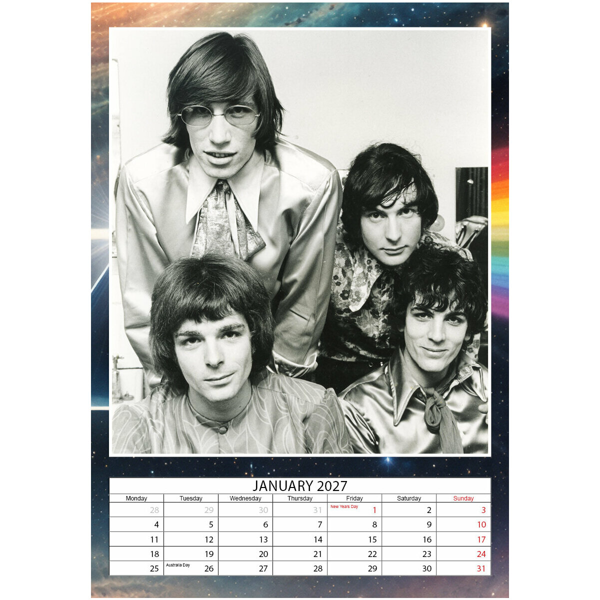 Calendrier 2027 Pink Floyd Rock Format A3