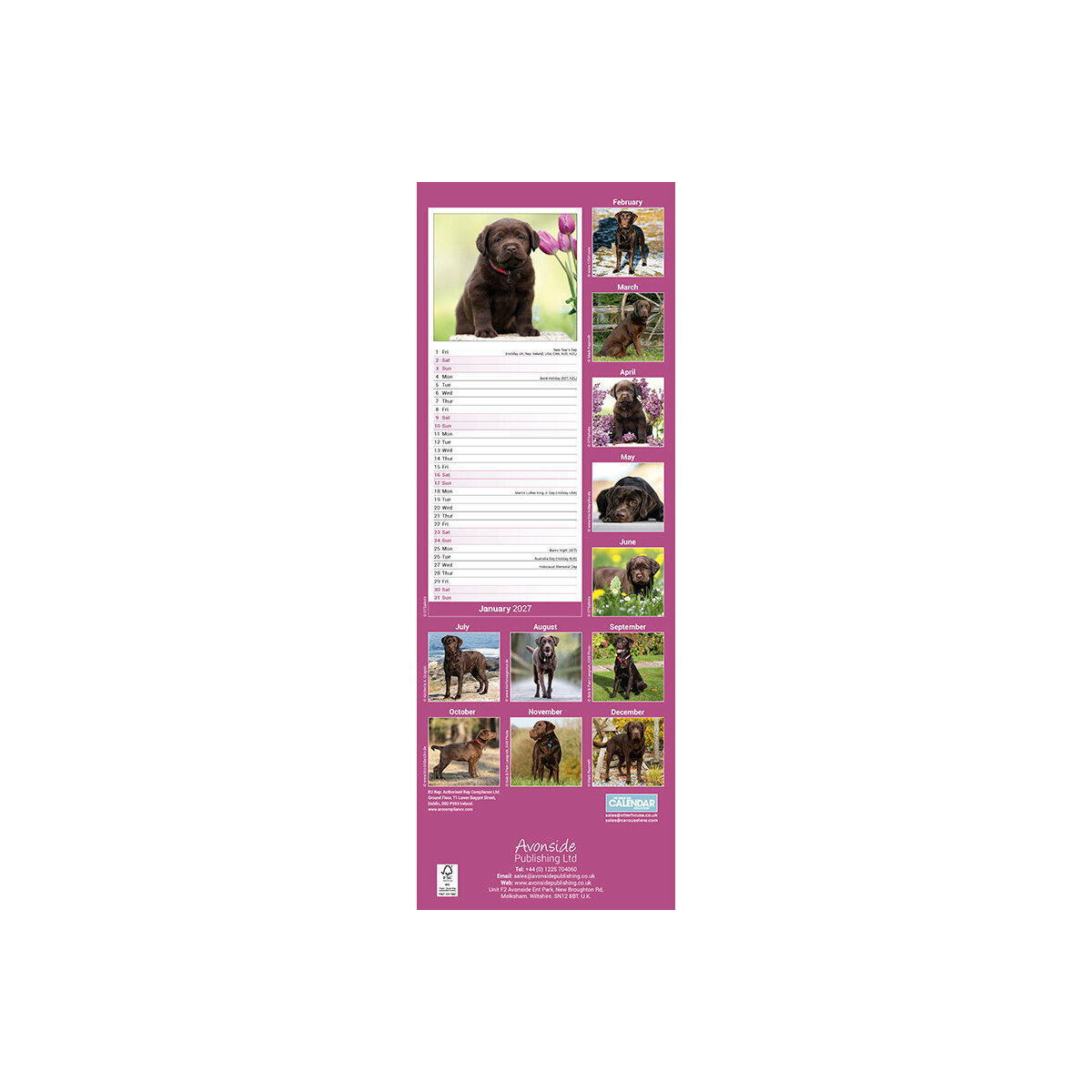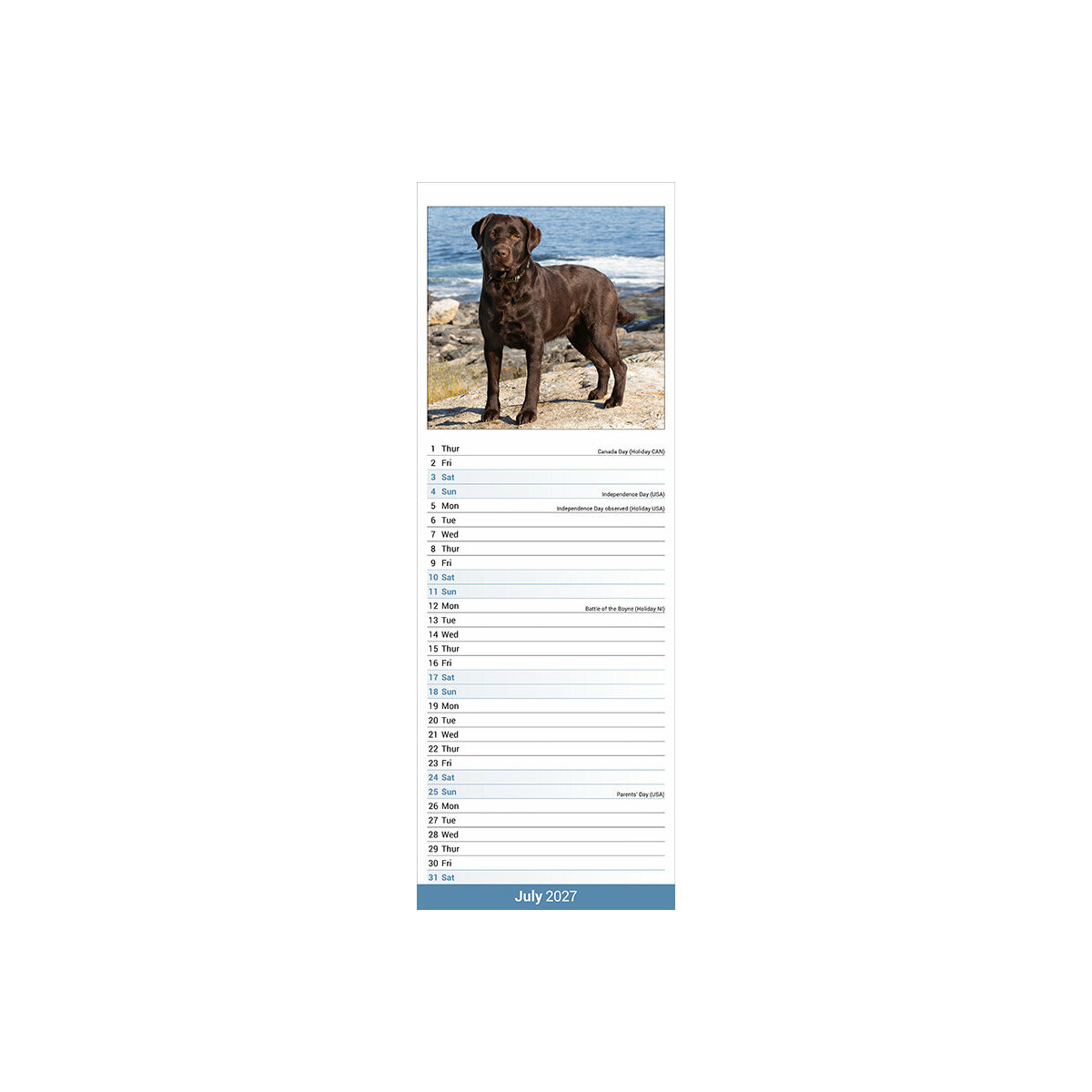 Plus de détail : Calendrier Etroit Slim 2027 Labrador Chocolat