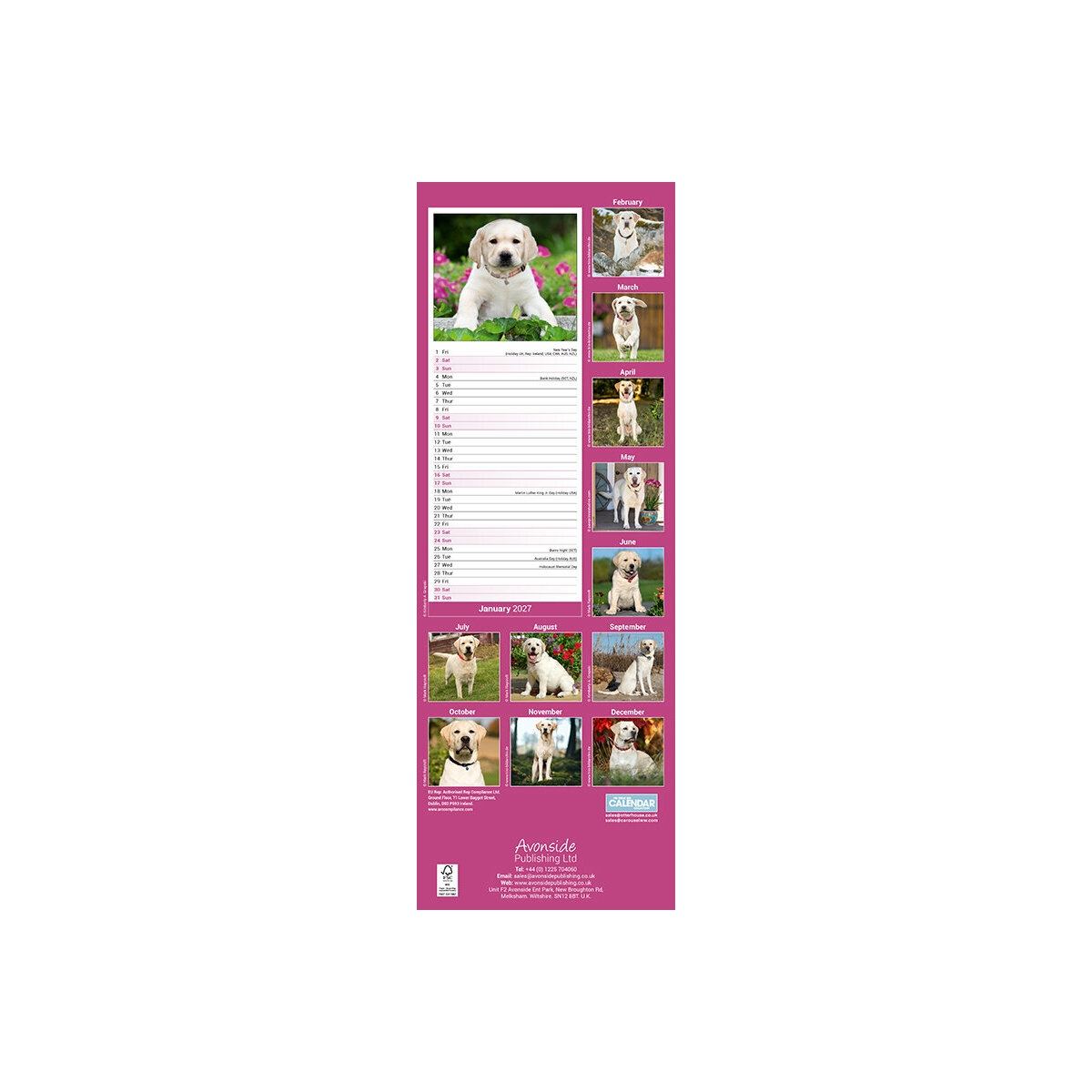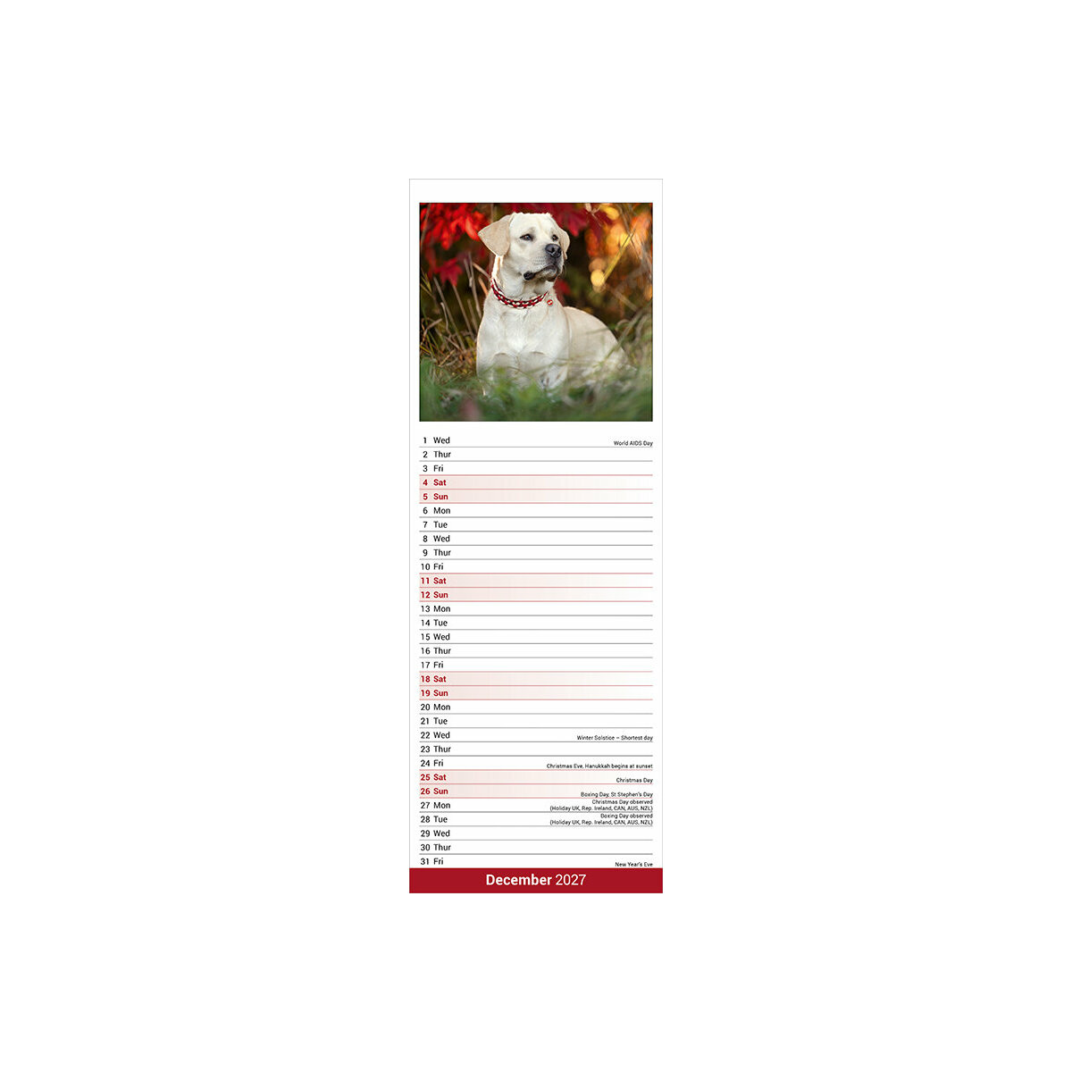 Plus de détail : Calendrier Etroit Slim 2027 Labrador Sable