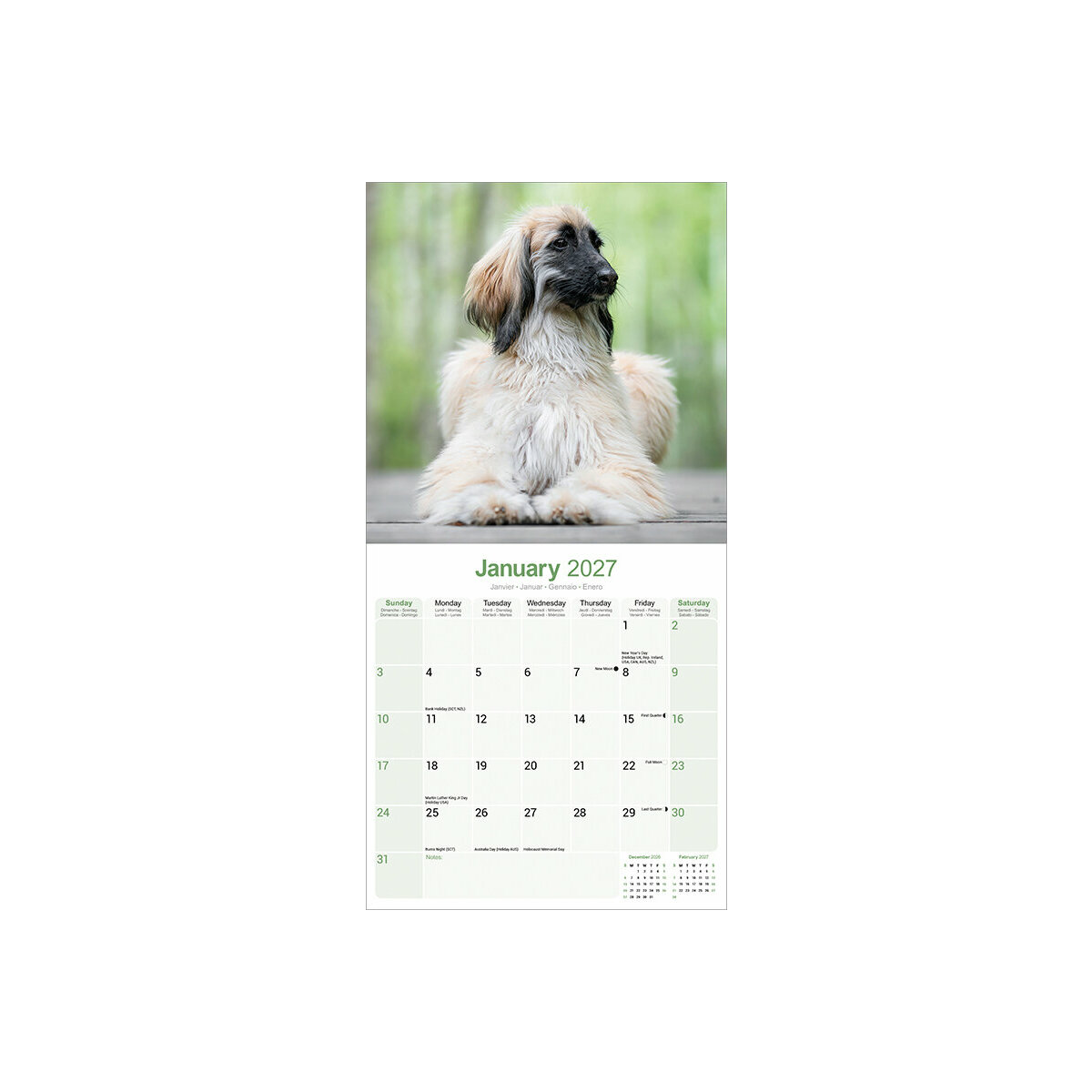 Description : Calendrier 2027 Lévrier Afghan