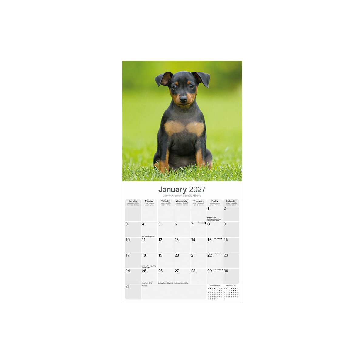 Description : Calendrier 2027 Pinscher Nain