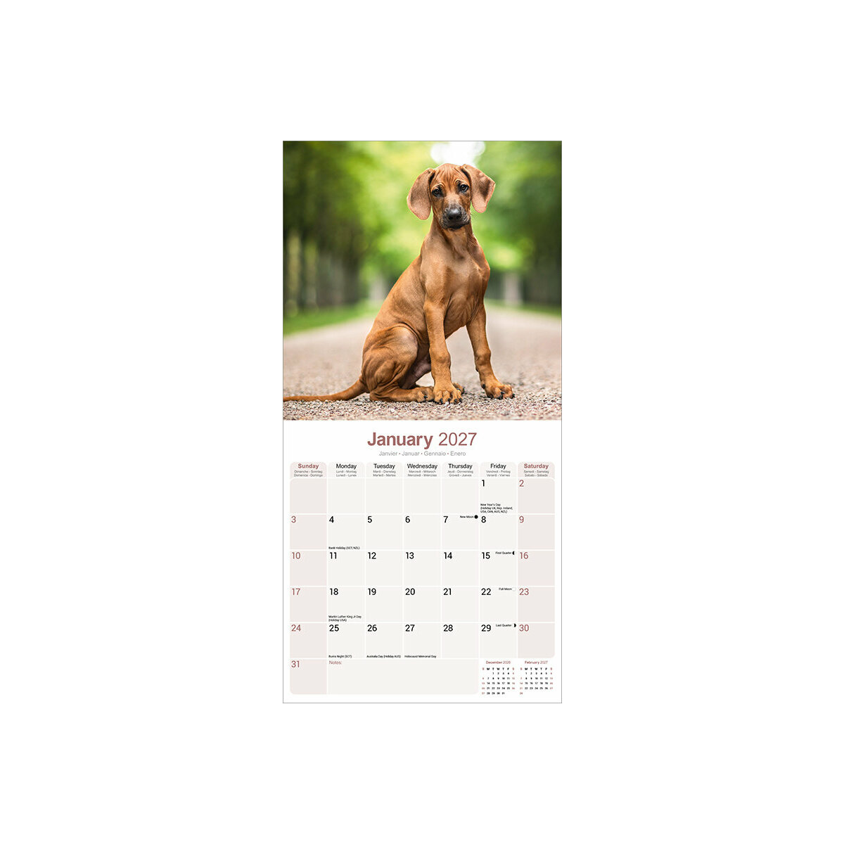 Description : Calendrier 2027 Rhodésian Ridgeback