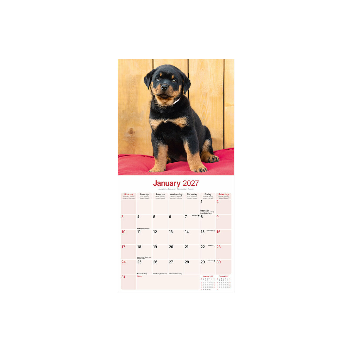 Les points forts de ce Calendrier 2027 Chiot Rottweiler :