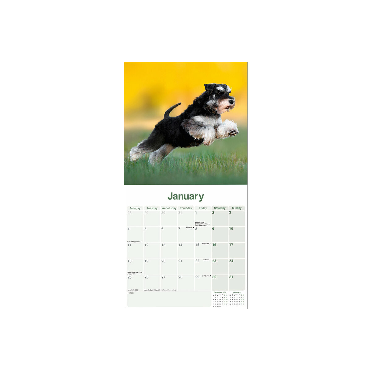 Les points forts de ce Calendrier 2027 Schnauzer Nain :