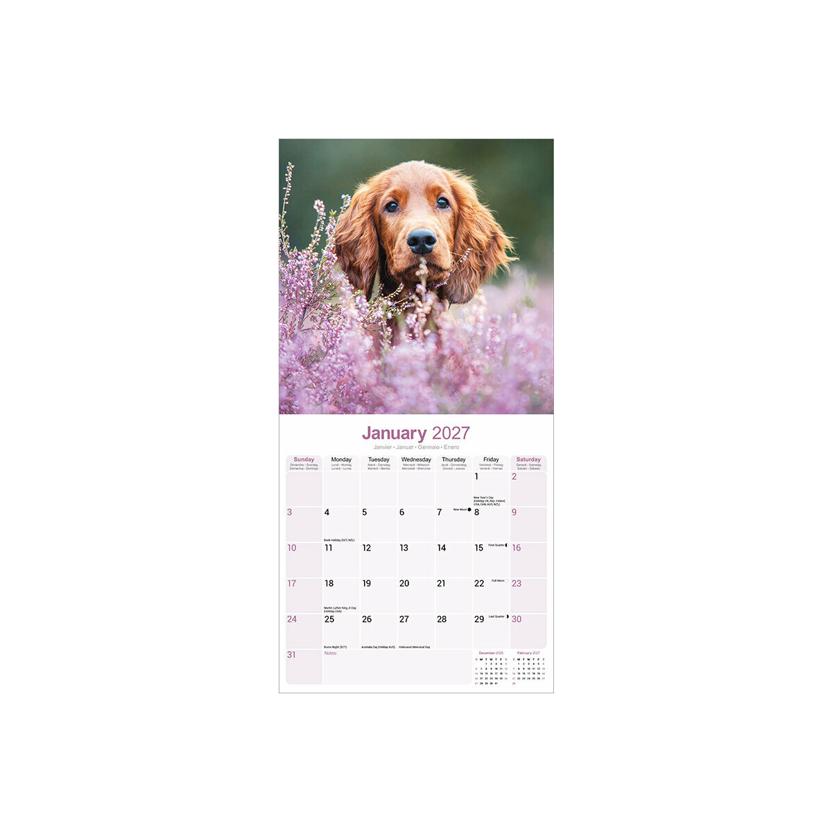 Calendrier 2027 Setter Irlandais