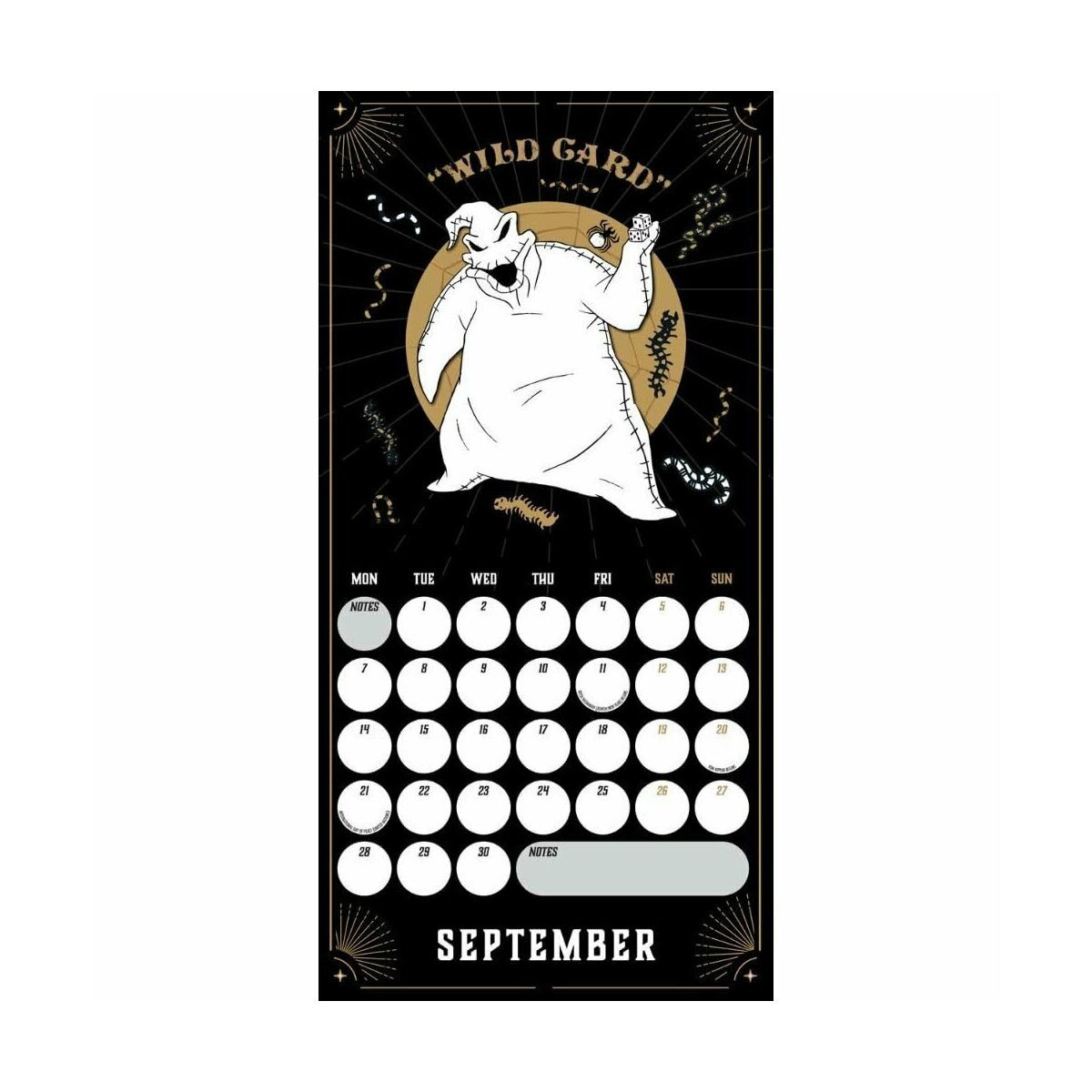 Ce Calendrier Mural 2026 de 30x60 cm présente chaque mois une nouvelle illustration du film "L'Étrange Noël de monsieur Jack". La moitié supérieure de 30x30 cm montre des scènes emblématiques du film. La moitié inférieure comporte l'éphéméride et des espaces pour chaque jour. Ce calendrier allie fonctionnalité et l'esthétique gothique unique du film.