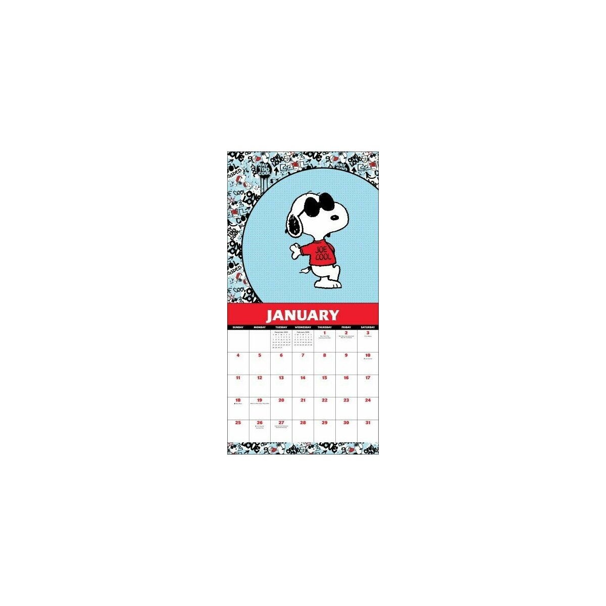 Grâce à ses grandes cases pratiques, vous disposez de l’espace nécessaire pour noter rendez-vous, projets et anniversaires. À la fois fonctionnel et décoratif, ce calendrier séduira petits et grands amoureux de Snoopy.