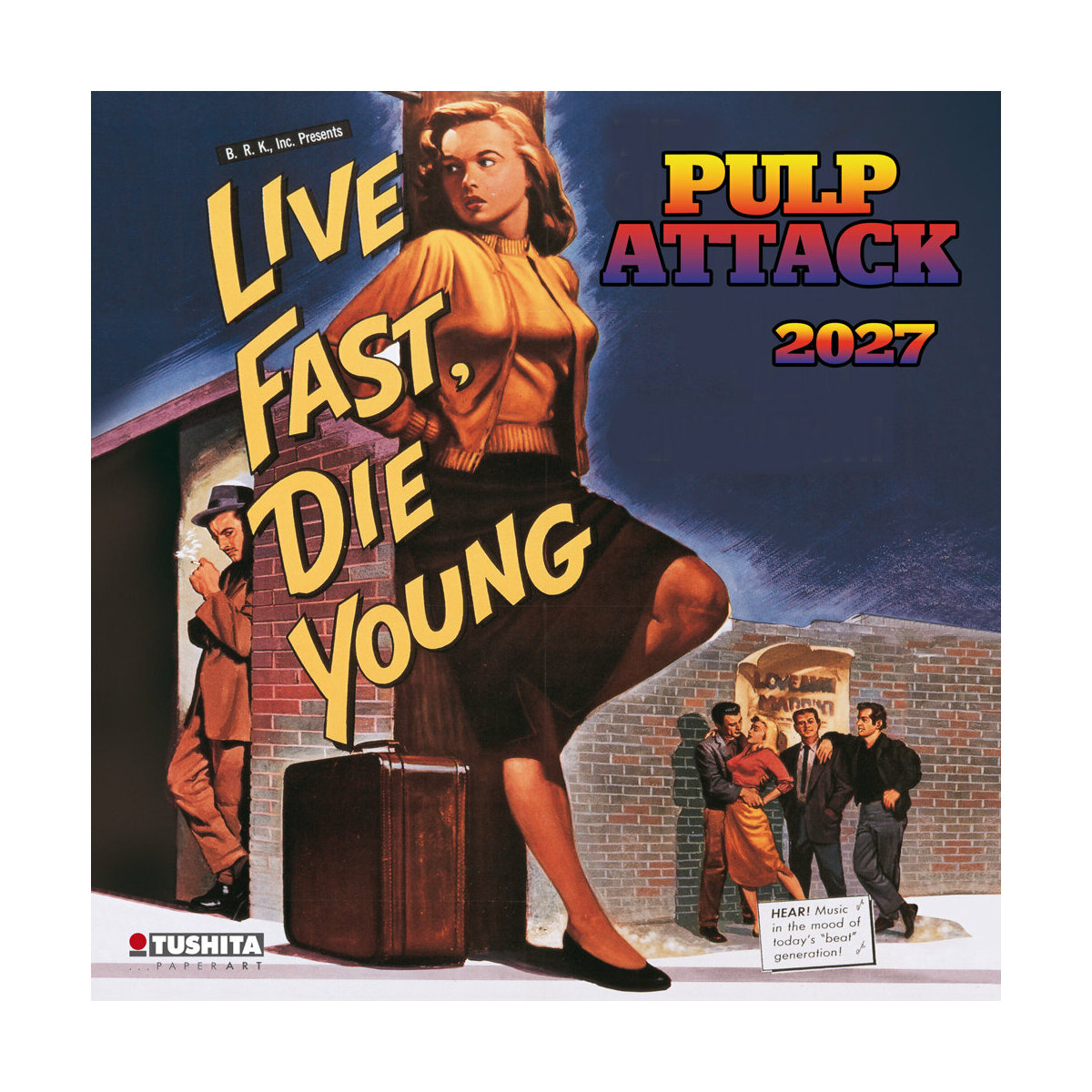 Un calendrier mural original met en scène l’univers Pulp Attack avec des illustrations dynamiques et colorées.