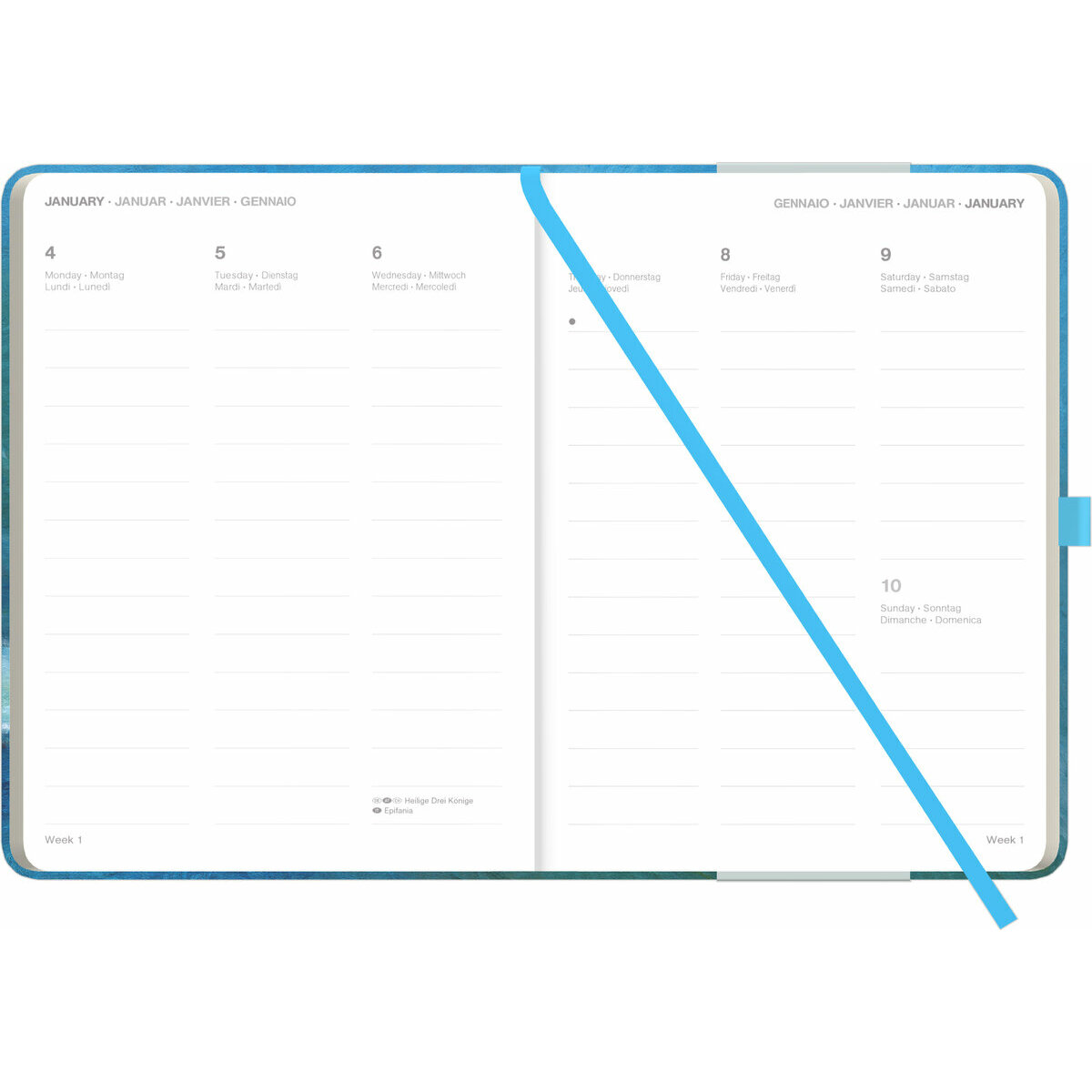 - Calendrier traduit en 5 langues : Français, Anglais, Allemand, Italien et Espagnol.