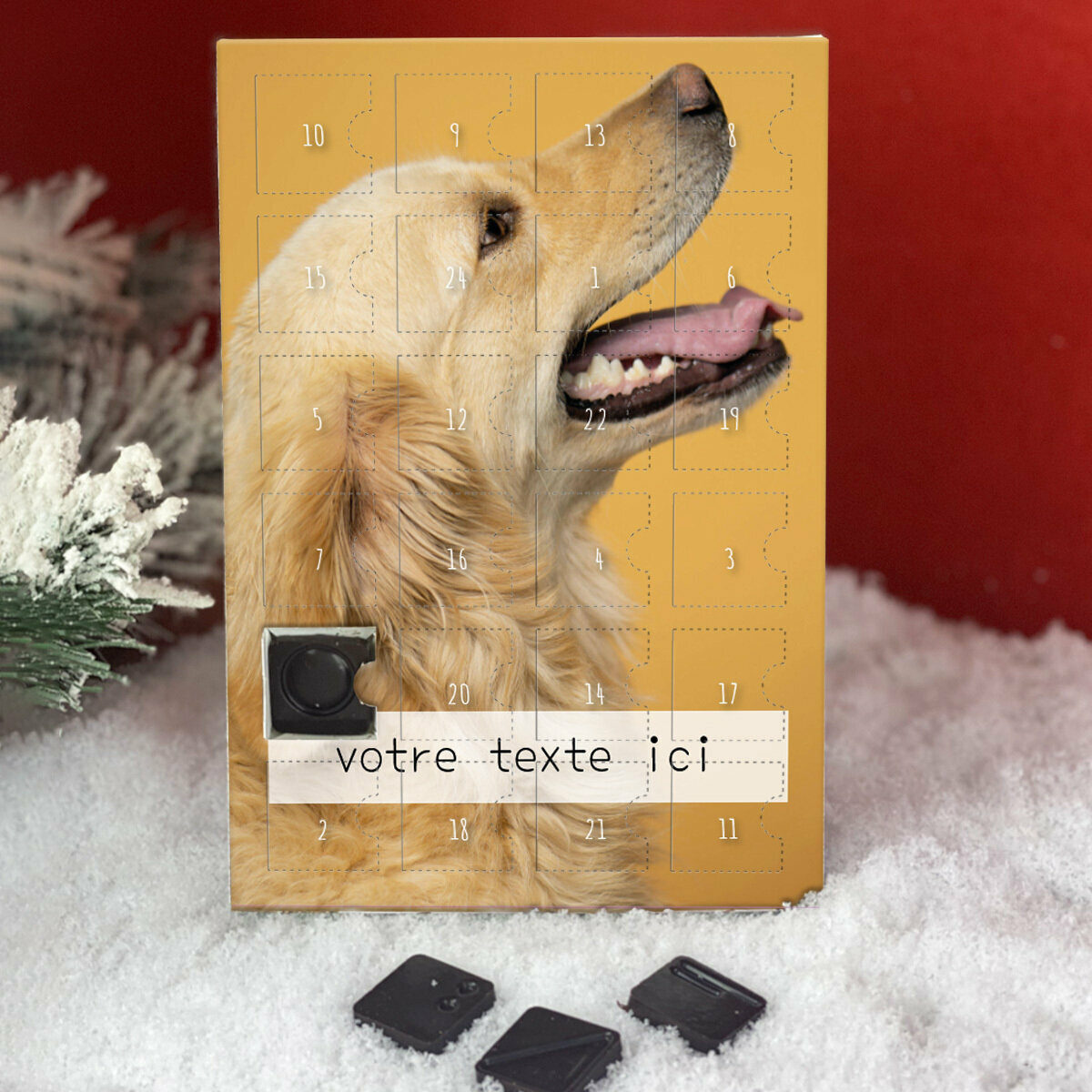 Personnalisez si vous le souhaitez votre Calendrier de l'avent Golden Retriever avec votre message