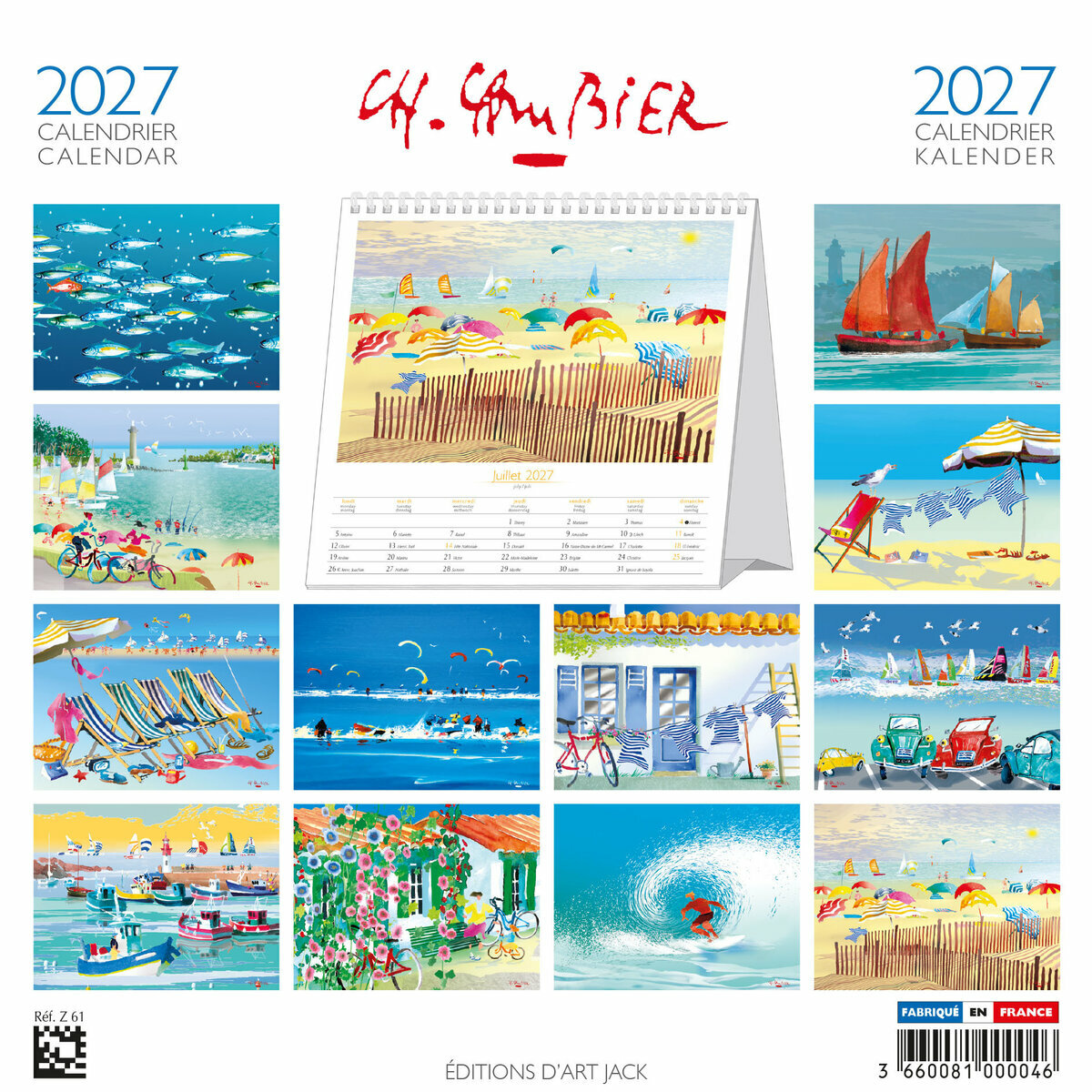 Ce Calendrier à Poser 2027 met en avant chaque mois un nouveau tableau de Charles Cambier, illustrant la beauté des ports de pêche. Chaque œuvre captive par ses détails réalistes et ses couleurs vibrantes, offrant une immersion dans l'atmosphère authentique et dynamique des ports côtiers tout au long de l'année.