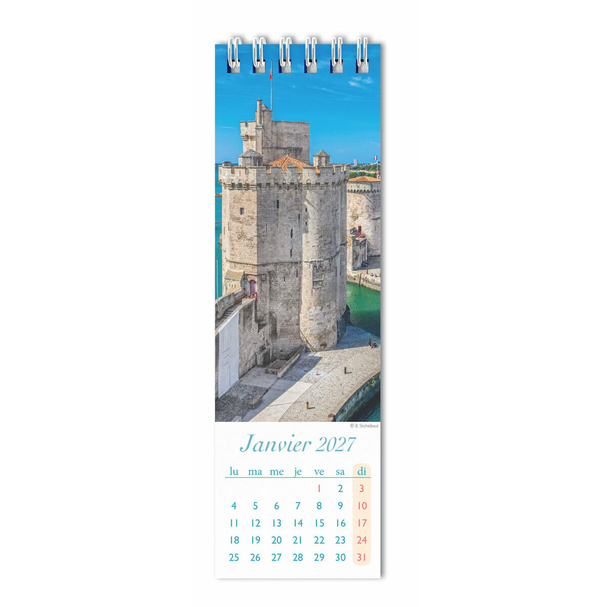 Ce Calendrier Marque-Page 2027 met en lumière la splendeur de la Charente-Maritime avec des photos captivantes chaque mois. Chaque marque-page allie fonctionnalité et esthétique, servant à la fois de repère temporel et d'hommage aux paysages emblématiques de la région : les ports pittoresques, les plages de sable doré et les villages côtiers pittoresques. Un outil pratique et inspirant pour traverser l'année.