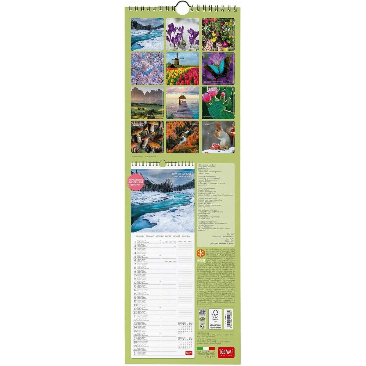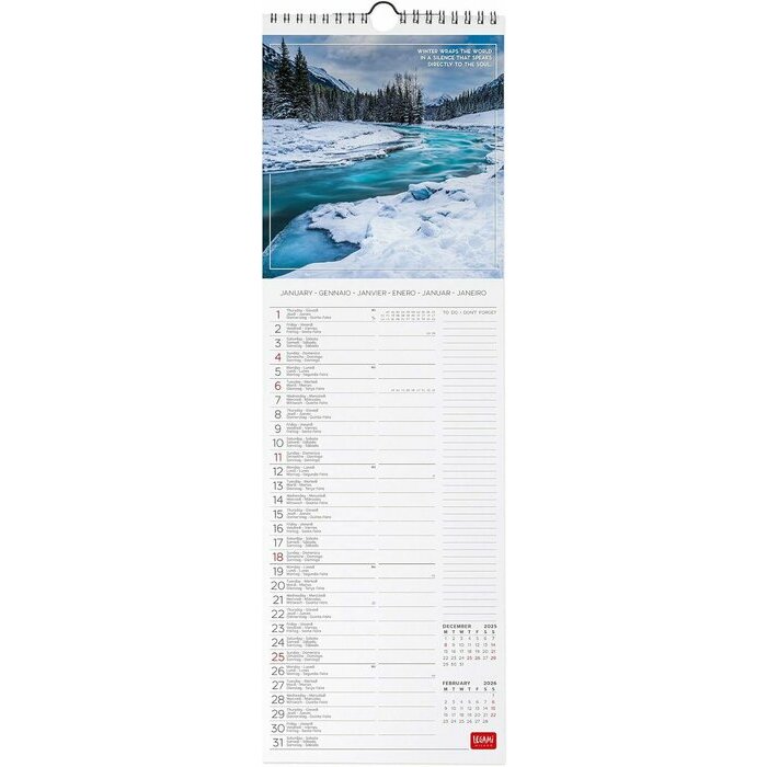 Ce Calendrier mural Slim 2026 de 16x49 cm ouvert est parfait pour les amoureux des paysages