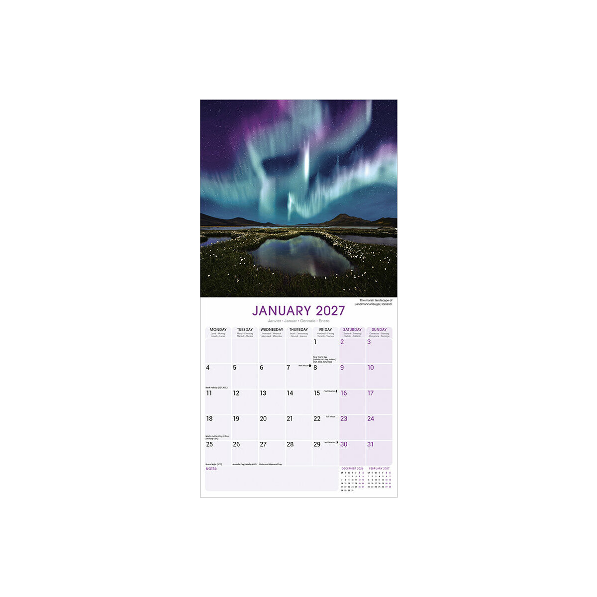 Description : Calendrier 2027 Aurores Boréales