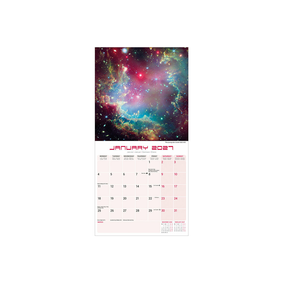Découvrez le Calendrier 2027 Espace captivant pour 2027 présente chaque mois une nouvelle image époustouflante de l'espace, mettant en avant les planètes, les constellations et les nébuleuses les plus spectaculaires. Plongez dans l'univers infini et découvrez la beauté céleste qui fascine l'humanité depuis des siècles.