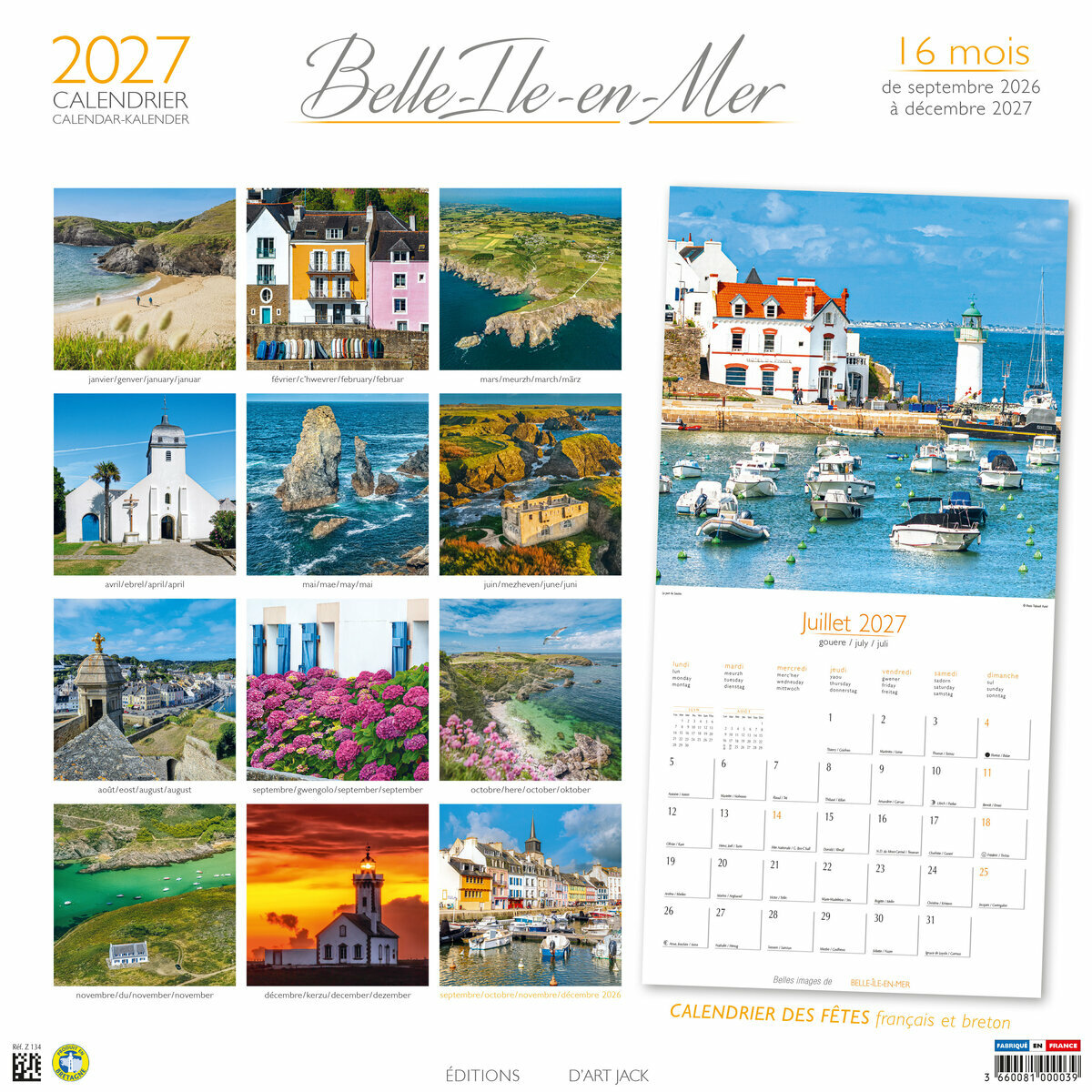 Ce Calendrier 2027 Belle Ile en Mer sur 16 mois (de Septembre 2026 à décembre 2027) est illustré de magnifiques photos
