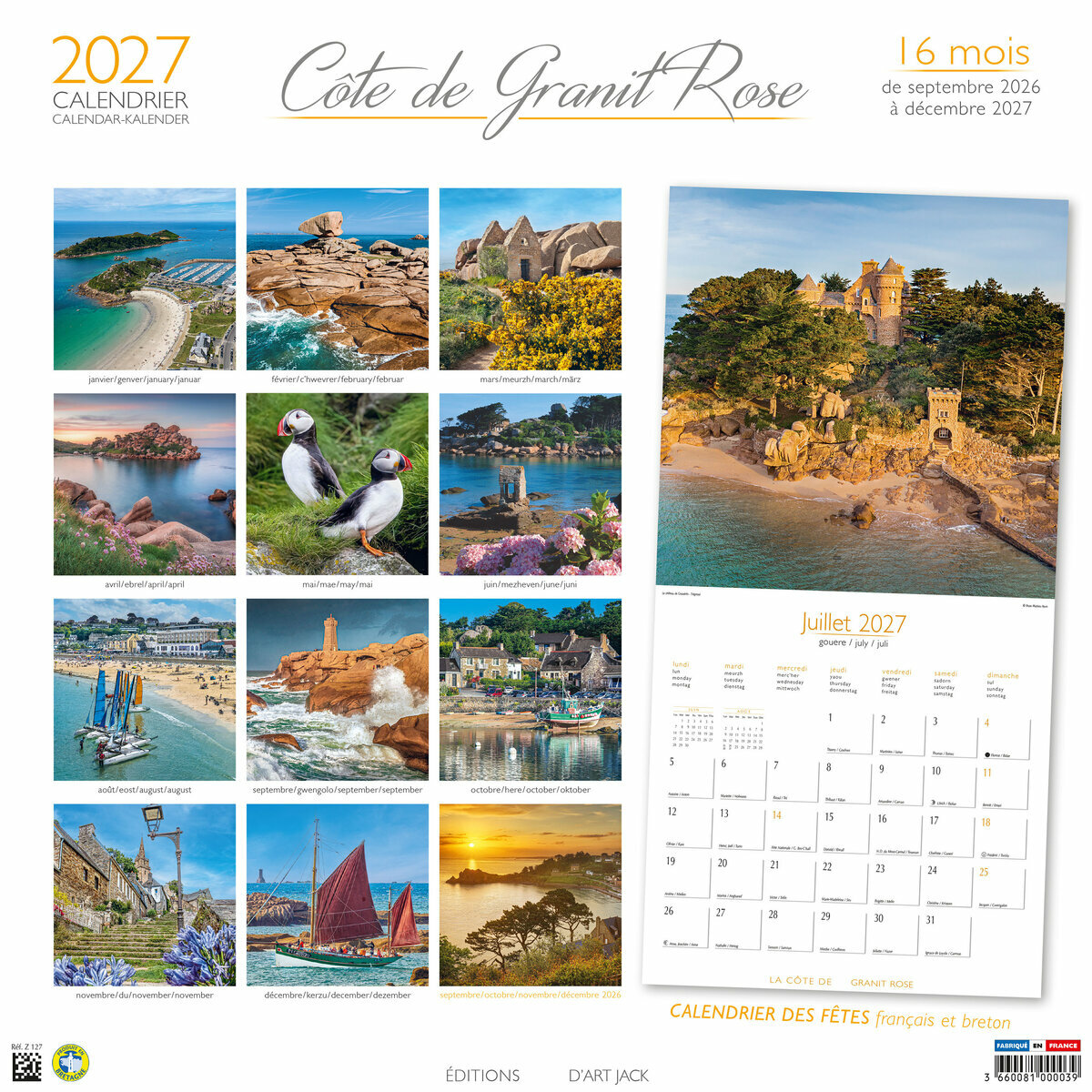 Ce Calendrier 2027 Côte de Granit Rose sur 16 mois (de Septembre 2026 à décembre 2027) est illustré de magnifiques photos