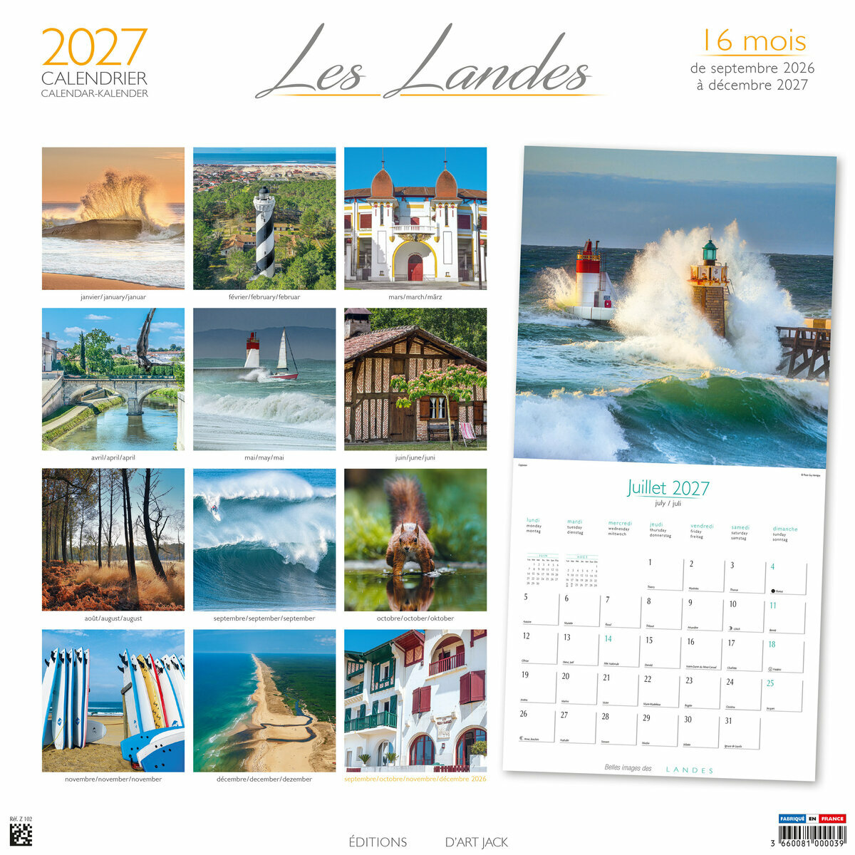 Ce Calendrier 2027 Les Landes Maison Landaise sur 16 mois (de Septembre 2026 à décembre 2027 ) est illustré de magnifiques photos