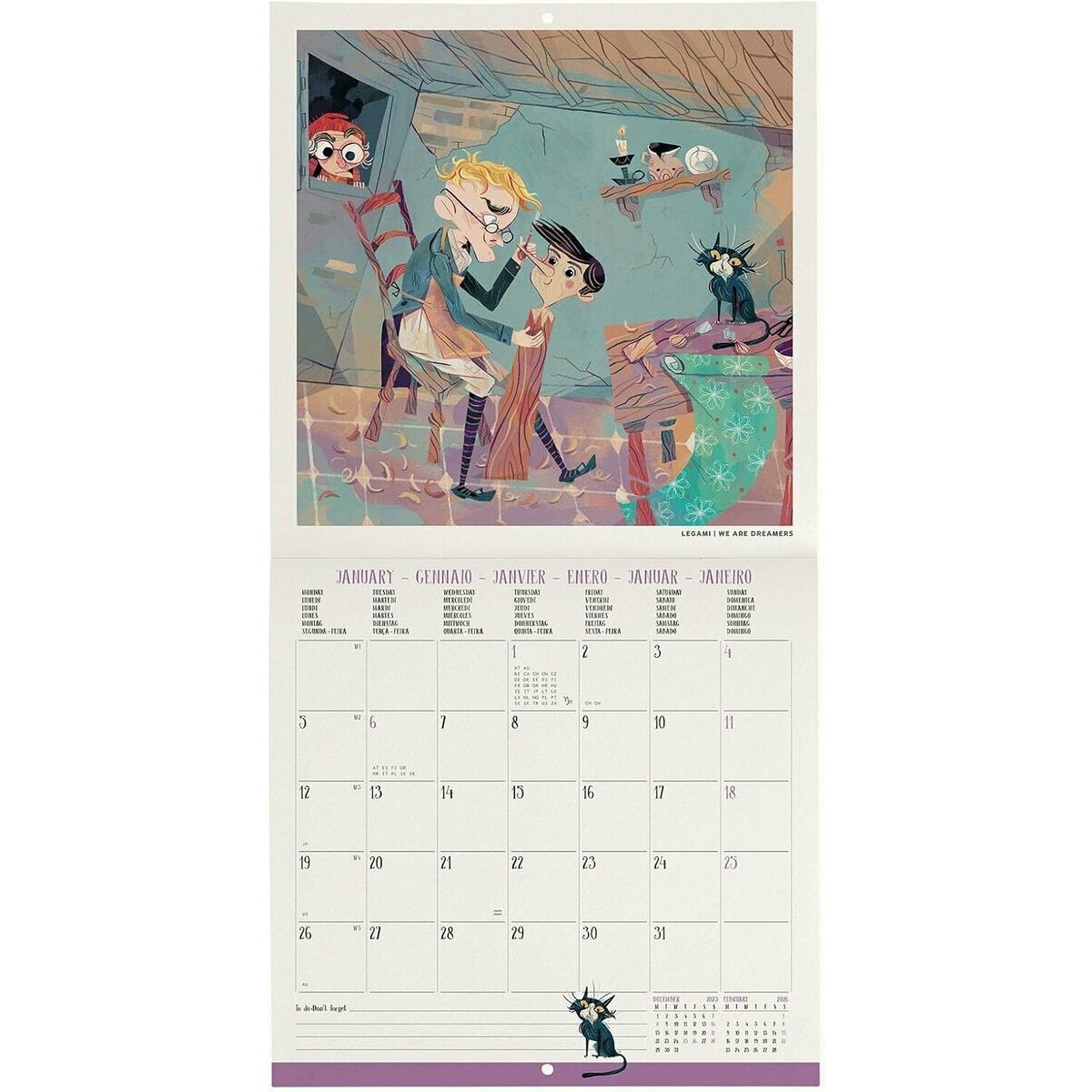Ce Mini Calendrier mural 2025 de 18x36cm ouvert est parfait pour les amoureux de Pinocchio