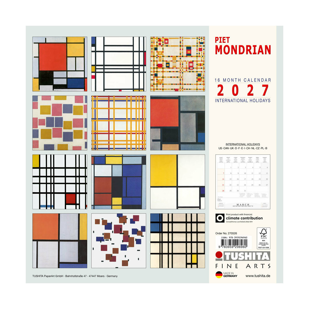 Les points forts de ce Calendrier 2027 Piet Mondrian