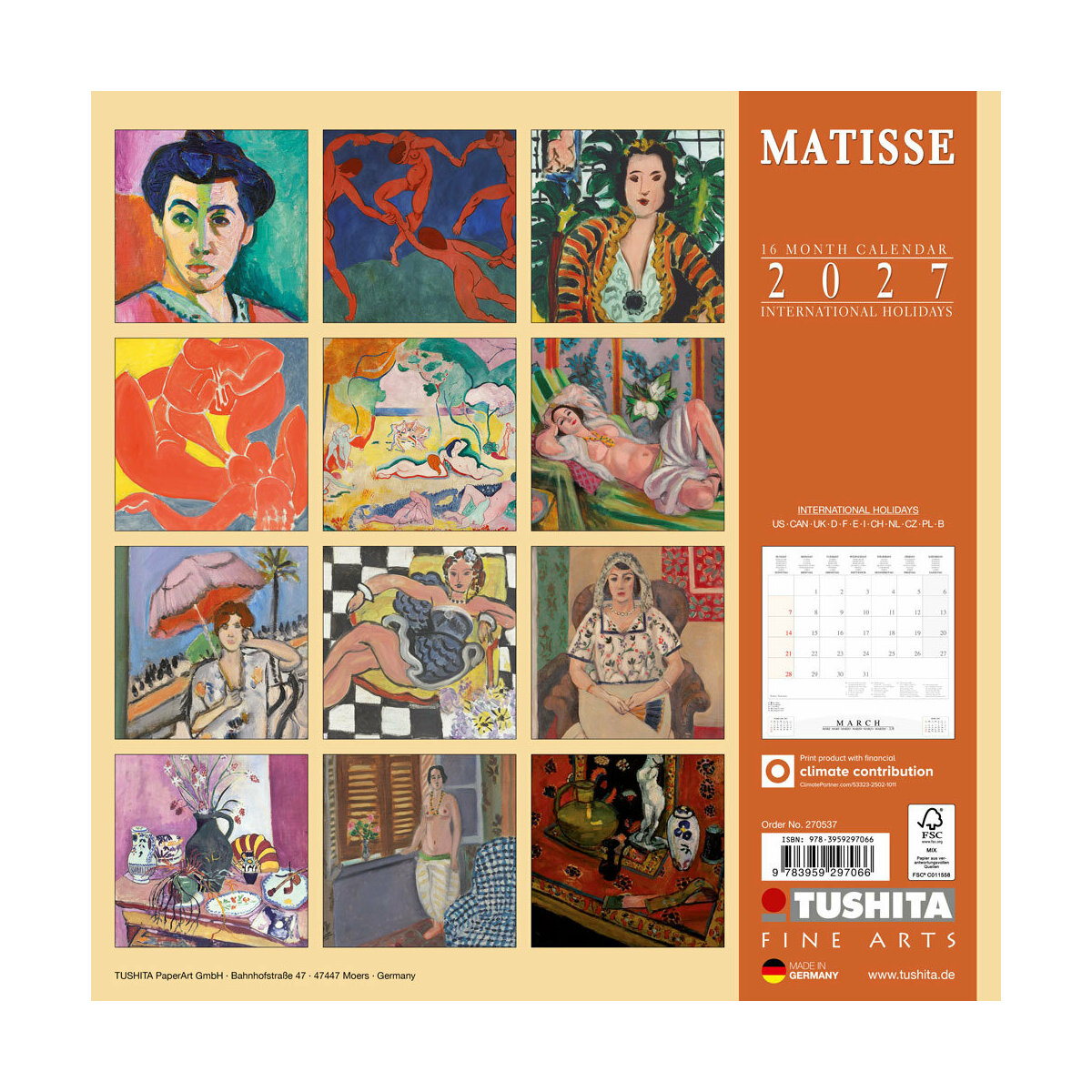 Description : Calendrier 2027 Henri Matisse Fauviste