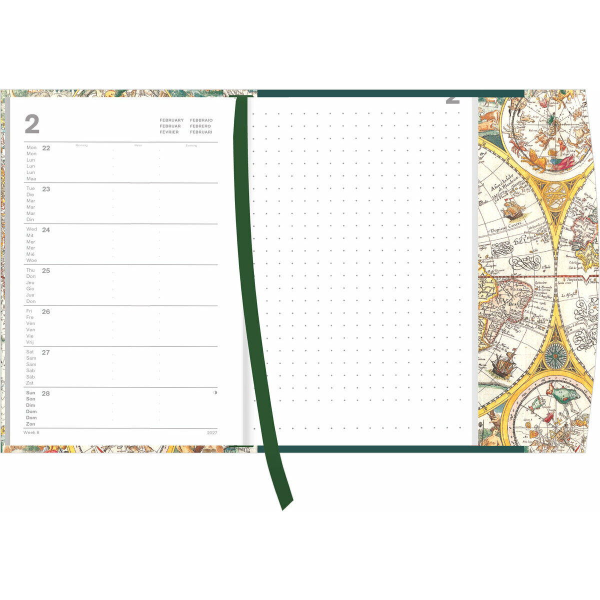 L'Agenda 2027 , avec des couvertures rigides ornées de cartes anciennes rétro, fusionne le charme du passé avec la fonctionnalité moderne. Chaque carte, riche en détails historiques, offre une inspiration pour explorer de nouveaux horizons. Un compagnon d'organisation qui ravive l'aventurier en vous à chaque regard.