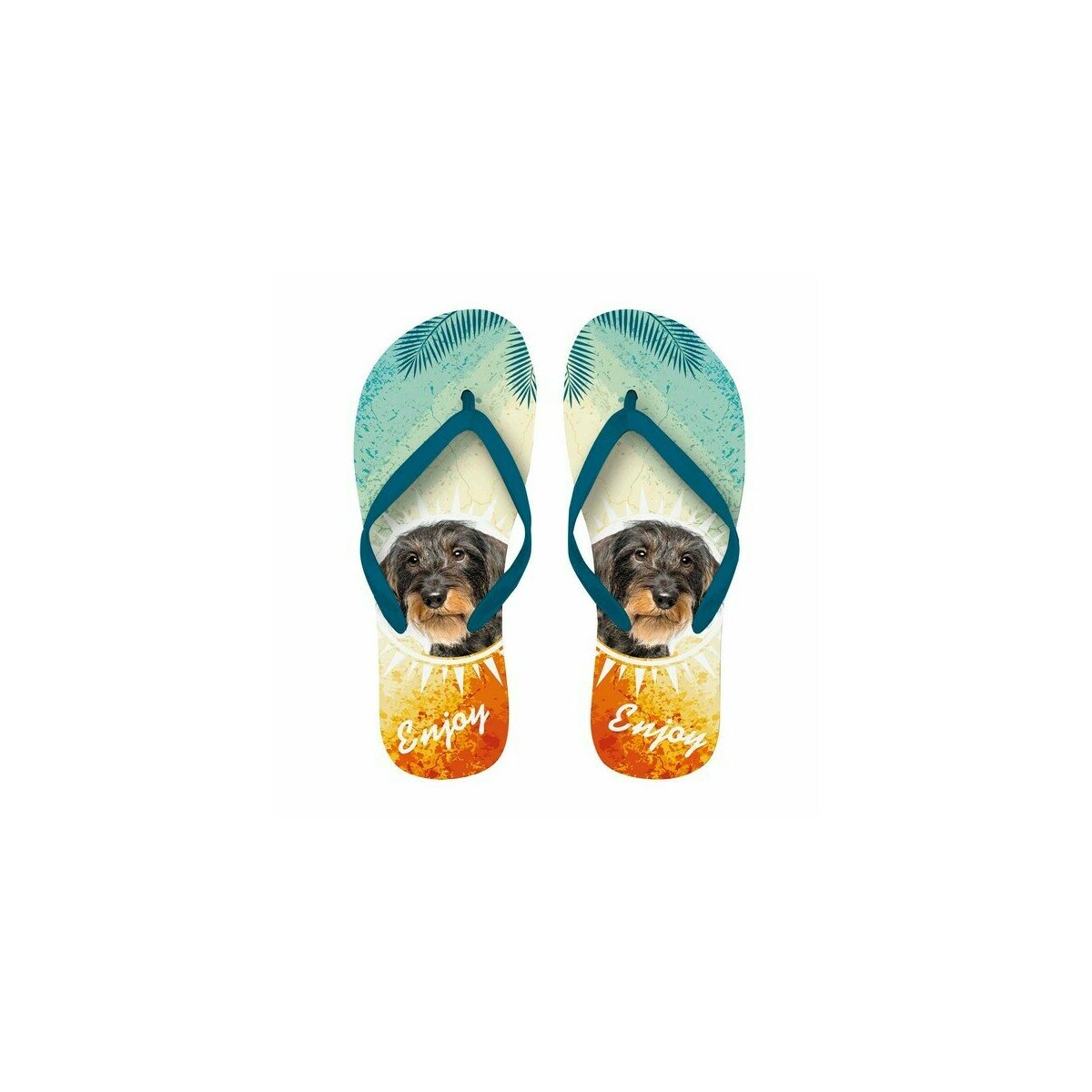 Découvrez cette paire de tongs à l'effigie de votre chien préféré le TECKEL.