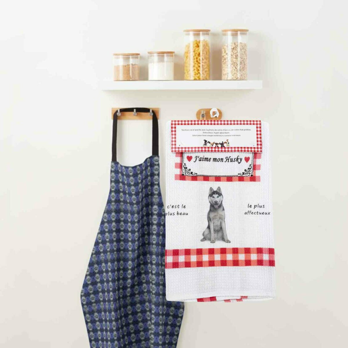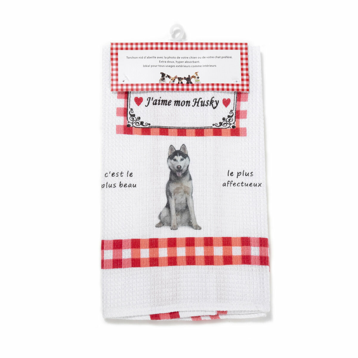 Les points forts de ce Torchon Nid d'Abeille Sibérian Husky